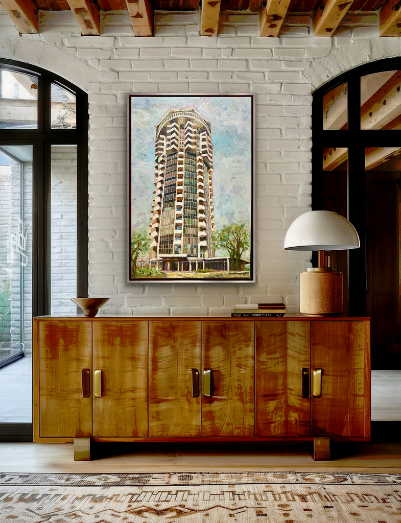 24” x 36” Acrylic On A Wrapped Canvas With A Champagne Color Floater Frame.